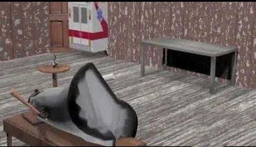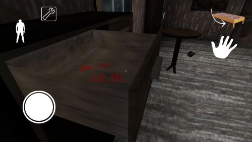 这个房间有一个1.5版本新更新的彩蛋,在墙上有一幅画(这幅画碰掉后隔一段时间会自动回原位),画碰掉后有一个拉杆,点击拉杆后触发机关,书柜会移位打开一个密室。找到一本书放在密室中的台面上,会看到被手铐拷住的奶奶(画面可能比较kb已打马赛克)