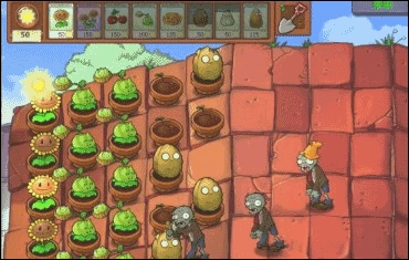 5、稳扎稳打,不能让僵尸入侵。所以需要做多坚果墙,进行保护。