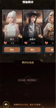 前期工作只选择互联网行业,努力当上轮值董事,目前这个工作的收入是最高的。这样当你的投资有一千多级的时候,就可以靠利息生存!当你成了富豪你就需要开始考虑找几个美女畅谈人生了,这个时候我们给大佬们准备了我们另外一个玩法,情缘系统。我们可以给美女们送点礼物,送的礼物越好,妹子对你的亲密度越高,越离不开你,让你享受更好的待遇,从而提升你得精力和其他的属性加成。但是这样要跟各位大佬说一下哦,送美女好的礼物需要前置条件,大佬们可以根据自己的情况送对应的礼物。每个美女的亲密度和属性加成可不会因为轮回而抛弃你,所以可以大胆放心送。