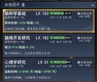 在前三个研究领域,其中自我提升中的脑科学和精神科学研究需要学习到2000级以上。神经科学研究只需要学到180级就足够了。然后我们下一步就是苟钱,苟钱前提就需要我们学习专业的技能知识。