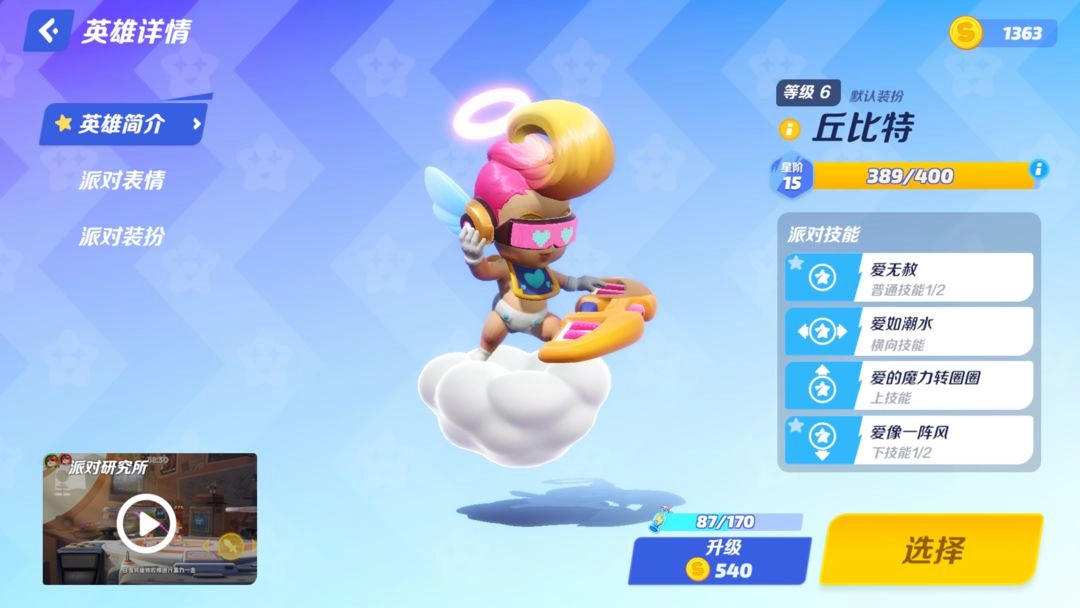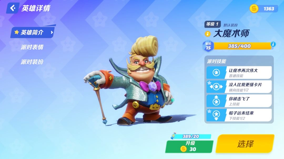 1、打开派对之星手游官方版,点击主页面左下角的“更换英雄按钮”,进入到英雄选择页面;