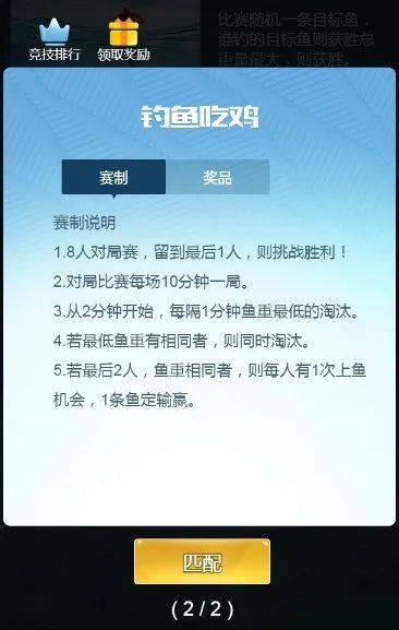 下面就是钓鱼吃鸡的赛制说明,我们可以简单的了解一下。