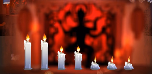 7、在窗户上方能看到蜡烛,依据窗户上方的蜡烛来解开神像蜡烛相关谜题,可得到半截蜡烛。接着往右边行进,场景会发生转换。