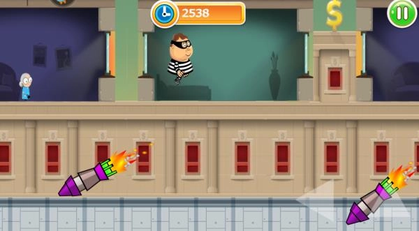3、胖乎乎的老爸跑动起来,模样十分滑稽可爱,各种各样的道具更是为老爸的“盗窃之旅”增添了不少趣味。