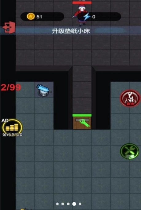 1、于地牢里探寻未知地带,与此同时安置防御塔以抵挡敌人的进犯。