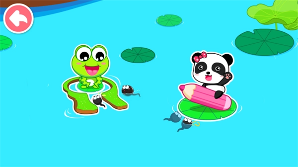 2、画一画:小蝌蚪是什么模样?青蛙妈妈又是什么模样?还有金鱼、螃蟹、乌龟和熊猫,你是否还记得它们的样子呢?要是记不太清也无妨,“画一画”环节会教你用简洁的线条勾勒出它们,而且你还能把画好的它们“安置”到池塘里哟。