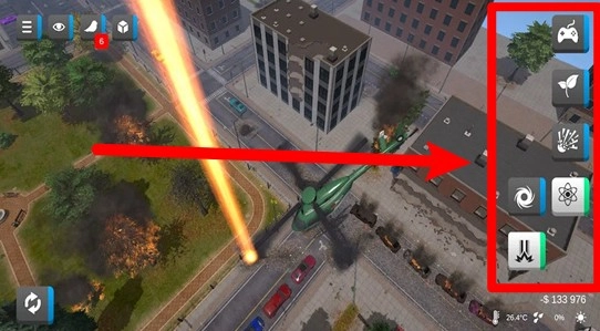 3.技能菜单功能:画面右侧设有多种特殊技能图标,如导弹、黑洞、激光等,点击即可释放,增强破坏效果。
