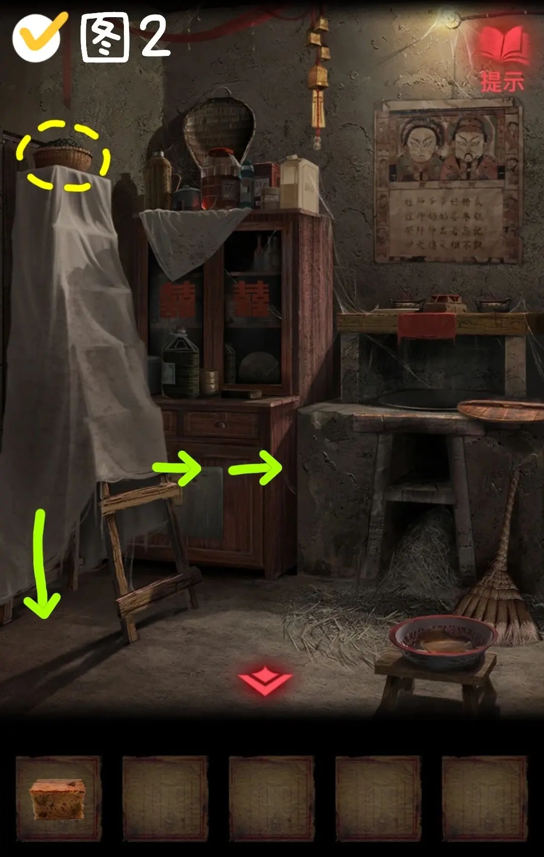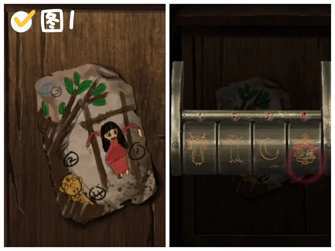 1.梳妆台左侧柜子,根据柜门上的图片解锁,如图,获得〔枣糕〕。(图1)