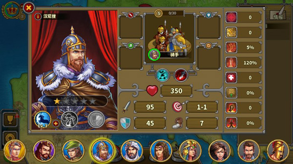 先说选将,将领是三技能,第一为主动,目前看有三大类:第一类为多重攻击可以攻击多人,炮兵基本是一炸一片,骑兵步兵都是打一直线,弓兵为多目标;第二类为恢复类,目前入手贞德实测一级的话基本就是几十的血根本没用;第三类为buff,个人觉得可以放弃。第二技能一般为攻击附加少数几个是降某种兵种的伤害,目前见到的有混乱、降士气、降攻击、降防御,还有两个nb技能,一个是勇猛升到最后可以让对方无法反击,还有一个bug技能后勤,满级后100%杀人回血12%,如果有个华盛顿扔到人堆里就是开了无双的状态,光靠反击就能清空一片,而且即使是一级在征服里触发概率也超高目前打前两个时代能保障霍去病和李世民的血量。