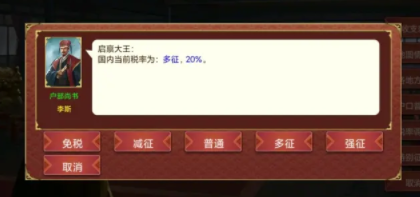 1:税收是国家最重要的来源,应当在前期一开始就提高税率,一般系统默认的税率是15%,可以提高到20%,高税率所带来的民心下降,可以通过资金扶持解决