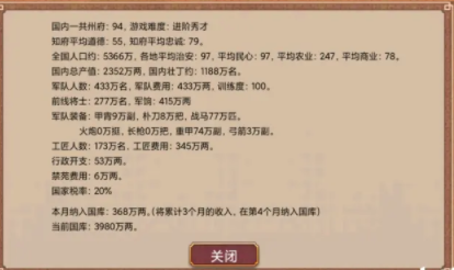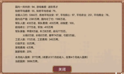 5:礼部的贸易,有时会有大臣主动提出,但需要你在礼部按钮中自己进行,有时贸易所得,可以抵得上三个月的税收