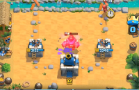 有的时候,对方黄金位放得很好,仅仅依靠单跳猪是打不进去的,遇到这种僵持不下的情况时,最好试一试利用卡牌卡位,让自己方的卡牌把野猪往边上挤一点,那么野猪非常有可能无视建筑,直奔公主塔而去。