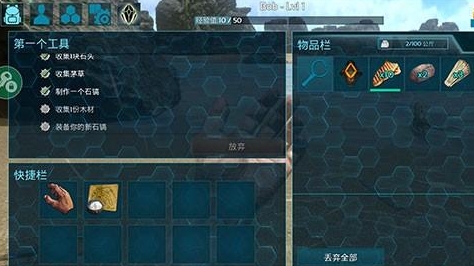3、做出选择后,便能开启你的冒险征程。起初,玩家需依照右上方的任务指示展开操作,要收集石头、木材等材料,制作各类武器装备,进而探索这个世界。