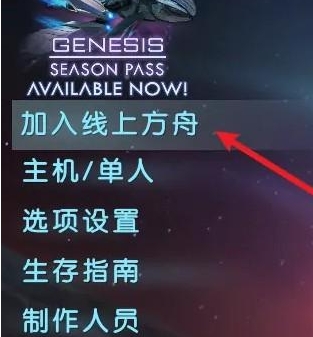 3、接着则需要好友也打开游戏菜单,选择加入线上方舟选项。