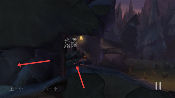 2、选定角色后就需要操控选定角色如乡巴佬,拖动屏幕操控角色向右边移动,右侧出现木屋场景,准备进入后续的拿道具场景。
