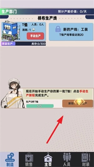 1、玩家只需点击上方的“手动生产”按钮,即可制作出大量T恤。