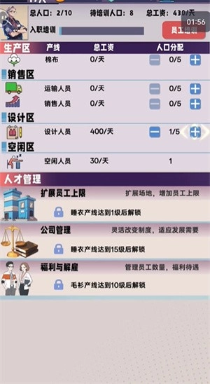 清新明快的画风与烧脑的经营系统相辅相成,既能享受放置玩法带来的悠闲收益,也能沉浸在精密规划的乐趣之中。点击开始,打造专属于你的时尚传奇吧!从一间小小的工作室起步,用智慧与策略编织独属于你的商业蓝图。