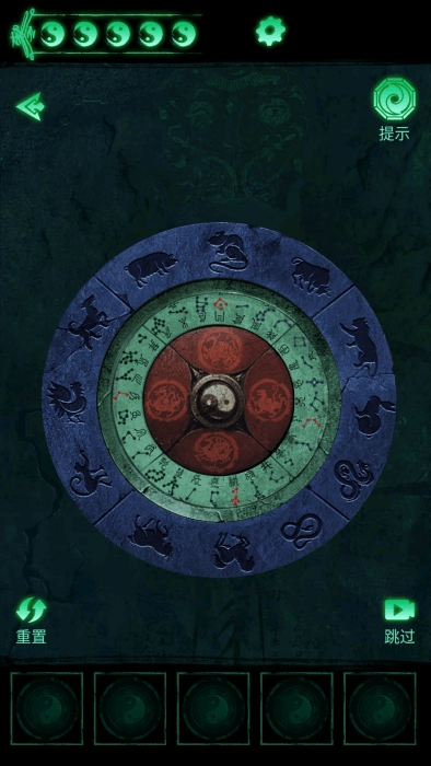 6、点击墓门上的四象八卦机关,依据石柱上的刻痕,调整二十八星宿与十二生肖的位置,使其与四象一一对应。