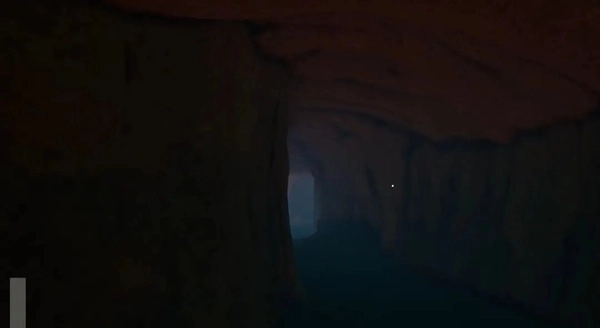 随着进一步的探索,到大概100米深度左右的地方机会发现一处洞穴。想必这就是mc里那种随机生成的矿洞,里面想必有不少裸露的矿物可以采集。但当我想拿出矿灯照明四周猛猛挖矿的时候,我才发现在这处洞穴矿灯根本就无法照常工作。