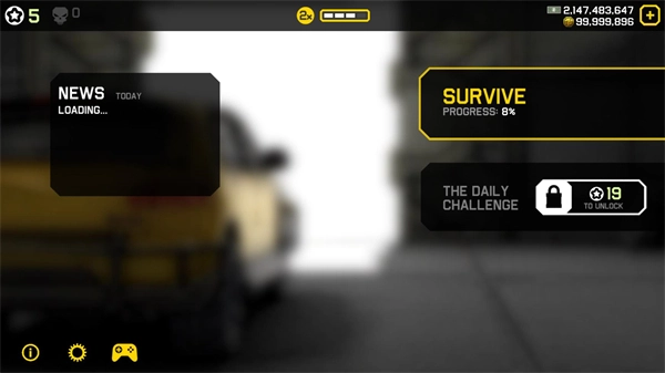 6、在游戏推进过程中会出现一些可完成的任务,完成这些任务后玩家将获得相应点数。当玩家因触碰障碍而结束当前挑战时,所积累的这些点数能够用于解锁各式各样的武器与车辆。