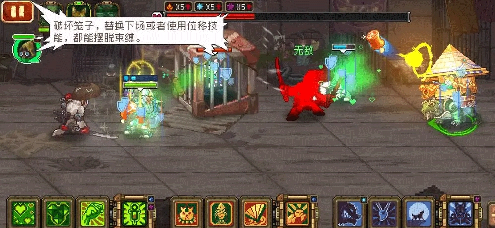 -被牢笼困住了,可以使用位移技能,替换下场,或者击破笼子逃脱。