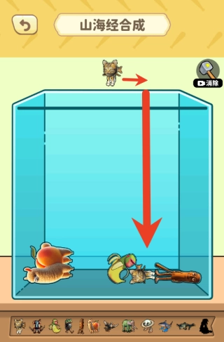 3、游戏里两个一样的海外山海经图鉴相互触碰后,就能合成下一个山海经图鉴,之后都可以按照这种方式操作。
