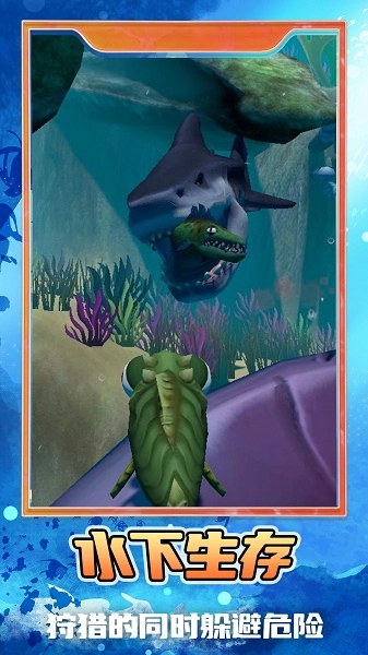 3、别具一格的3D渲染设计,带来强烈的沉浸体验,让你化身大白鲨,成为海洋中的绝对霸主。