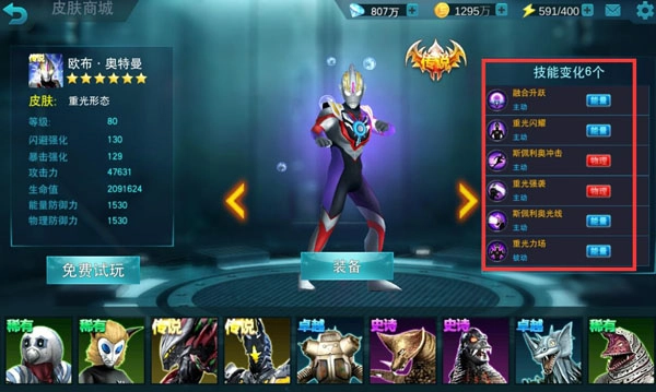 6、收集满300个碎片就能兑换赛罗奥特曼的专属皮肤“无限形态”了。
