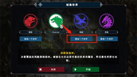 3、接下来需要选择世界的环境以及背景,默认为无对手,还可添加一个或多个敌对势力。