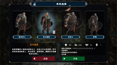 4、游戏一共为玩家提供了维京武士、瓦尔基里、狂战士、萨满等四个角色,不同的角色有着不同的属性面板和特性。