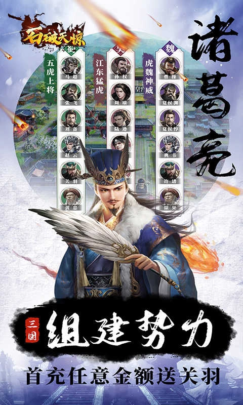 玩家们能自由收集并培养专属的三国武将,更有赵云这类强力角色免费赠送,尽在石破天惊!
