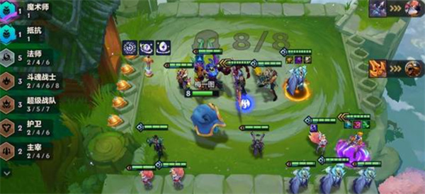 前中期过渡:法师+护卫+斗魂为主打工阵容,争取连胜或控制掉血
