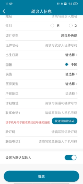 5、输入就诊人的基本信息并进行提交,提交之后就可以去申请了。