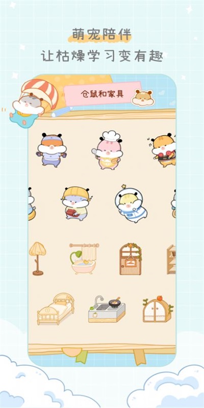 3. 每日都有萌态十足的小仓鼠,准时提醒你学习上线的时间。
