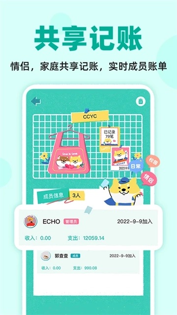 共享会计的一个账簿能够容纳五类人使用,分别是家庭成员、夫妻双方以及朋友。快来和大家一起记账吧!