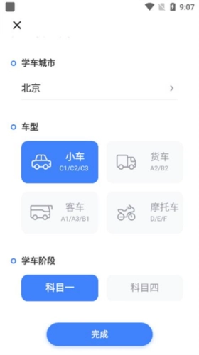 1、根据用户自身情况选择驾考类型。