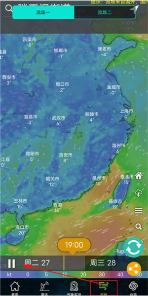 3、除此之外“流畅”栏目中,也可查看当前时段最新气流运动情况