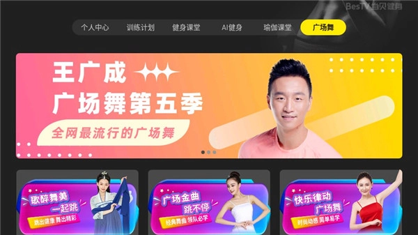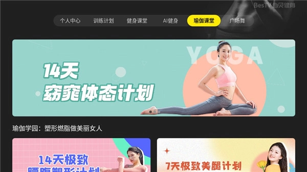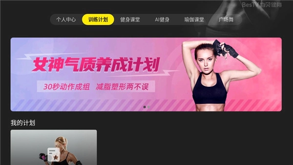 1、在本站安装并打开BesTV当贝健身tv版,进入首页,用户可以在这里看到各种健身入门,减脂瘦身等课程。