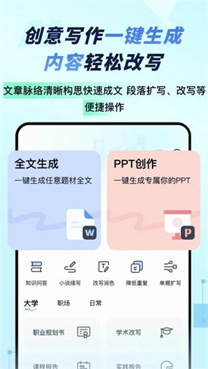 2. 能够智能创作出优质文章,也可对自创文章进行批改。