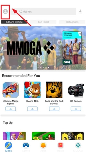 1、首先打开ACMarket软件主页,点击左上角的个人头像。
