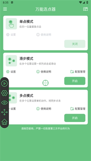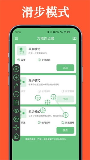 万能连点器堪称一款极为实用的手机连点神器,它具备多种连点模式供您挑选,点击频率以及点击区域都能随心设定,适配众多机型系统。不仅如此,万能连点器还允许您将多种操作手势进行组合,从而打造出独具个性的连点方案。要是您有这方面需求,那就快来试试万能连点器吧!