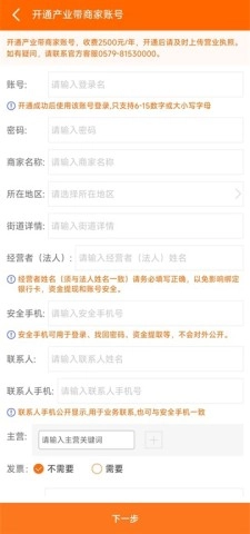 3、填写准确的信息,最后点击页面底部的“下一步”,按照步骤操作即可完成开通。