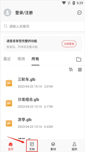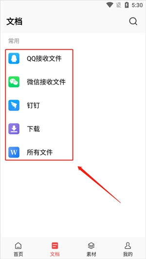 2. 来到应用的首页,挑选“文档”。
