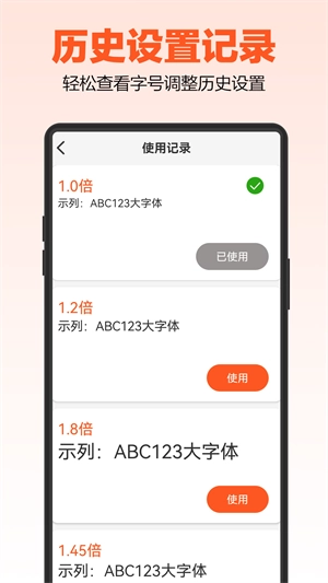 1、历史设置查看:保存并展示之前设置过的字体大小记录。