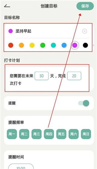 2、然后设置你的目标名称,选择打开时间以及次数然后点击保存