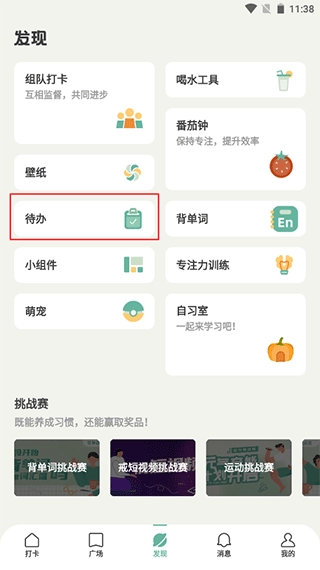 2、目标打卡 - 除一键打卡功能外,还新增了关联自习室、番茄钟、喝水及运动工具,助力你便捷且真正自律地完成目标打卡。