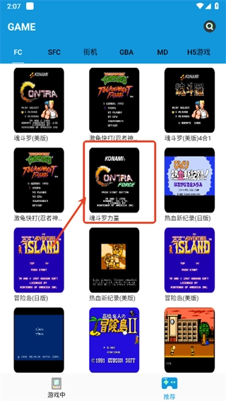 3、选择您想玩的游戏,比如“魂斗罗力量”。