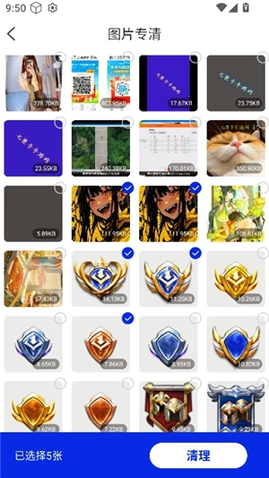6、进入图片专项清理界面,能够对各类壁纸照片进行勾选并删除。