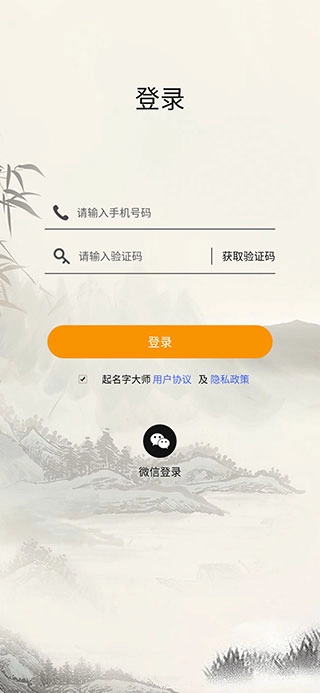 1、在本站安装起名字大师,打开后可通过手机号 + 验证码登录,也能用微信登录。