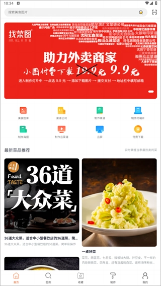 找菜图具备制作灯箱片、海报、云菜谱以及云屏等功能。借助它,你不仅能够自主设计店铺海报,还能上传个人作品。该软件功能实用,是一款极为好用的菜品图片资源软件。